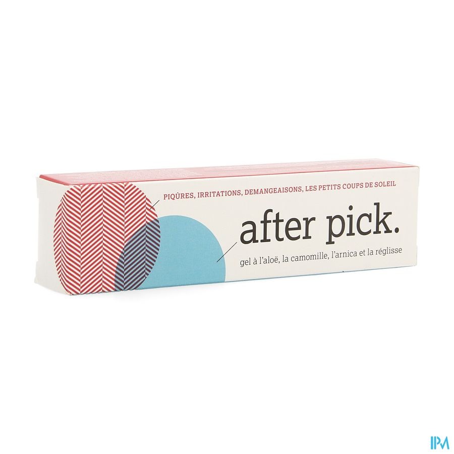 Afterpick contient e.a. extrait de Camomille-, Arnica- et Aloë Vera ainsi qu'un nouvel bio-polysaccharide anti-inflammatoire Rhamnosoft renforçant l'action de l'Enoxolone déjà présent.