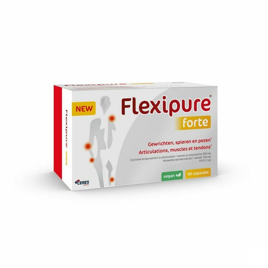 Flexipure® forte est un complément alimentaire complet qui soutient les articulations, les muscles et les tendons*. Il contient un extrait de curcuma sous forme phytosomale innovante (Meriva®), un extrait de boswellia et de la vitamine D. Cette formule agit à plusieurs niveaux : le curcuma et le boswellia aident à maintenir la souplesse des articulations et des tendons, tandis que la vitamine D contribue au bon fonctionnement musculaire. Les ingrédients sont soigneusement sélectionnés et parfaitement absorbés par l'organisme.