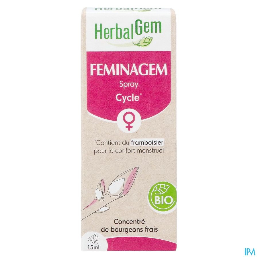 FEMINAGEM participe au confort de la femme pendant son cycle. Les jeunes pousses de framboisier aident à réguler le flux grâce à leur action sur L'équilibre hormonal. L'association synergique de la viorne, de la vigne et du basilic agit en douceur sur les gênes abdominales liées aux menstruations. La marjolaine et la camomille favorisent L'équilibre de l'humeur.