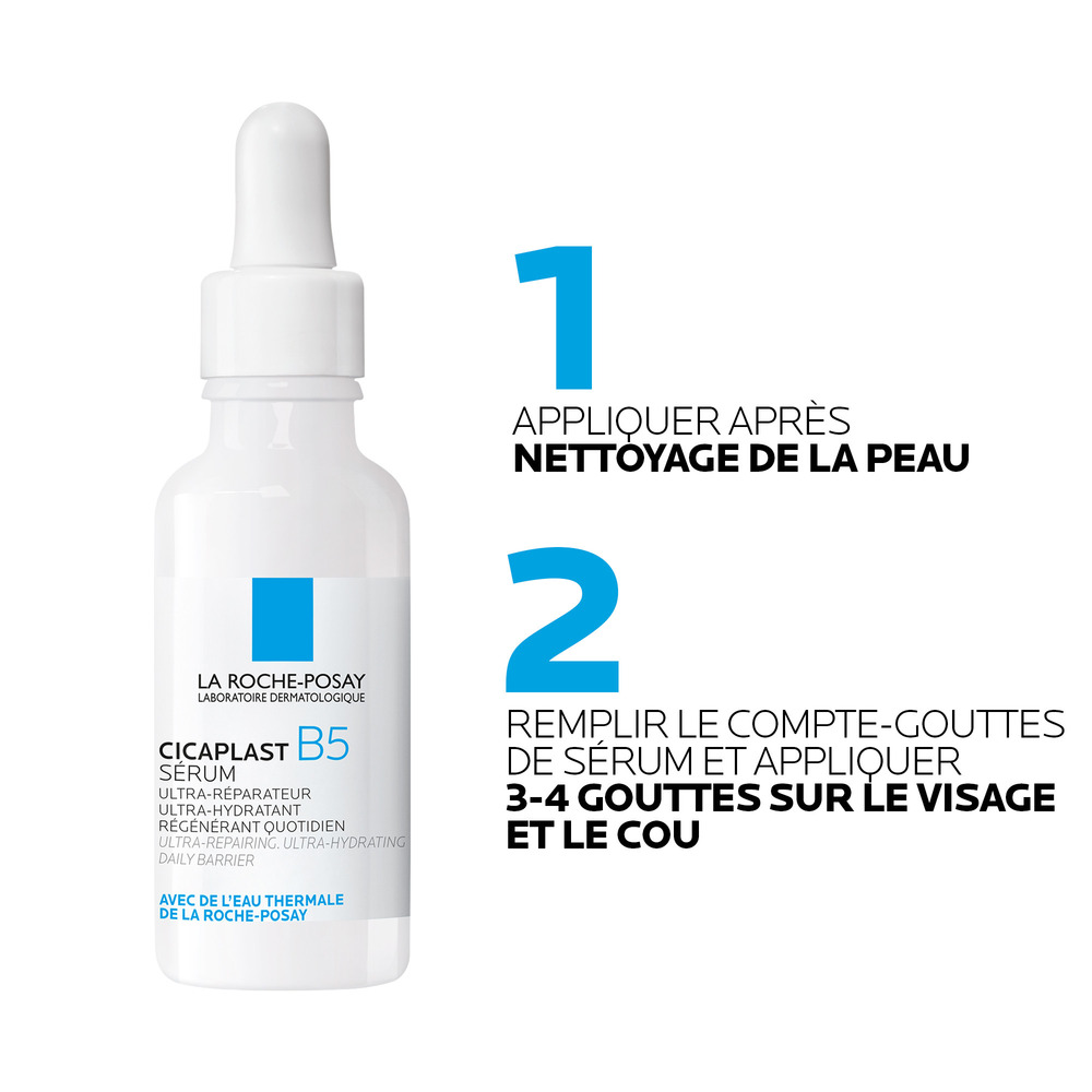La Roche-Posay Cicaplast Serum B5 est un sérum intensément hydratant et réparateur. Ce sérum concentré à 10 % de vitamine B5 améliore la qualité de la peau dès le premier jour. Le sérum convient aux peaux déshydratées ou irritées sujettes au ternissement. Il aide à restaurer la fragile barrière cutanée et à la protéger des agressions extérieures quotidiennes. Il protège également la peau des irritations et du dessèchement ultérieurs.