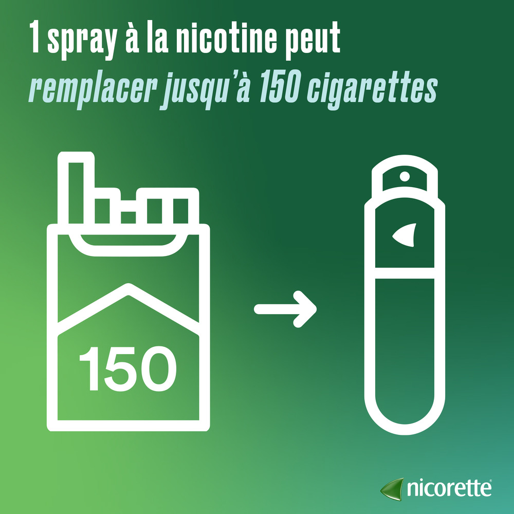 - Nicorette Spray Fruit & Mint apaise votre envie de fumer en trente secondes avec 1 à 2 vaporisations. Commencez toujours avec une pulvérisation. Si l'envie ne passe pas, utilisez une seconde pulvérisation.