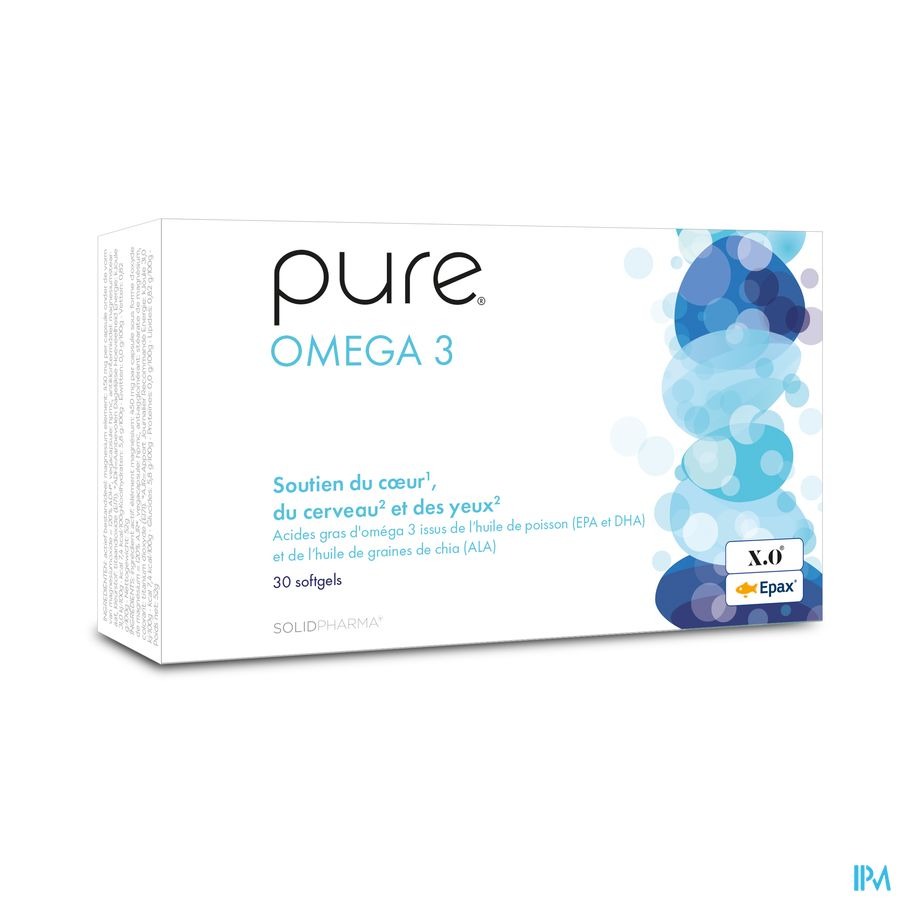 Pure Omega 3 sont des gélules de gélatine de poisson avec de l'huile de graines de chia (ALA) et huile de poisson (EPA en DHA).