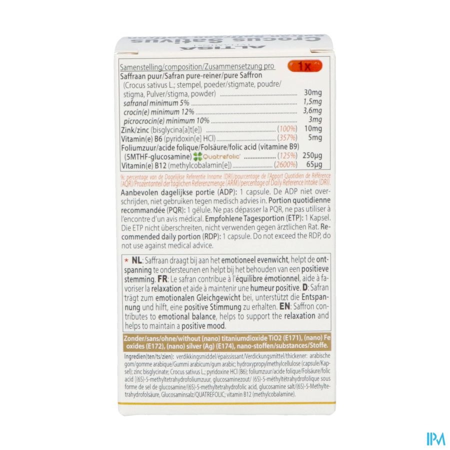 ALTISA SAFFRAINE CONCENTRÉE ADVANCED COMPLEX, une formule complète et une alternative particulièrement bonne au millepertuis Hypericum. Le safran contribue à l'équilibre émot...