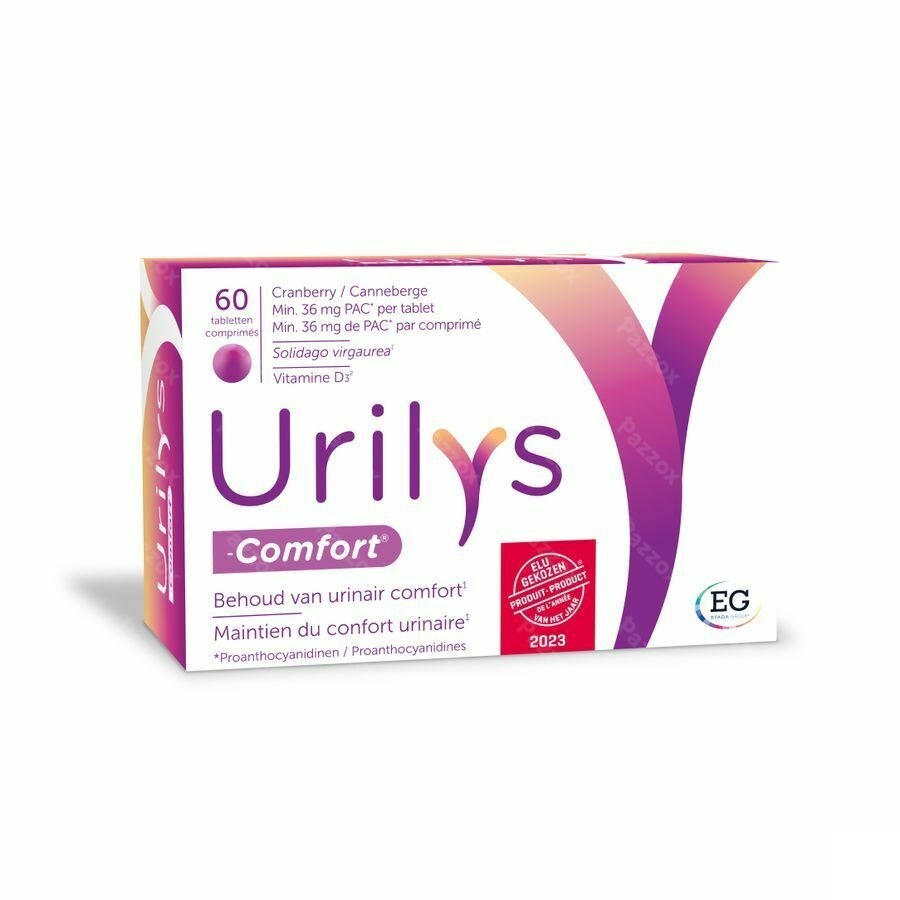 Urilys-Comfort contient une combinaison unique de 3 ingrédients pour maintenir le confort urinaire : - Extrait de canneberge provenant de la canneberge entière - avec une teneur élevée d'au moins 36 mg de PAC (proanthocyanides) par comprimé. ,Solidago virgaurea ,Vitamine D, pour soutenir le système immunitaire