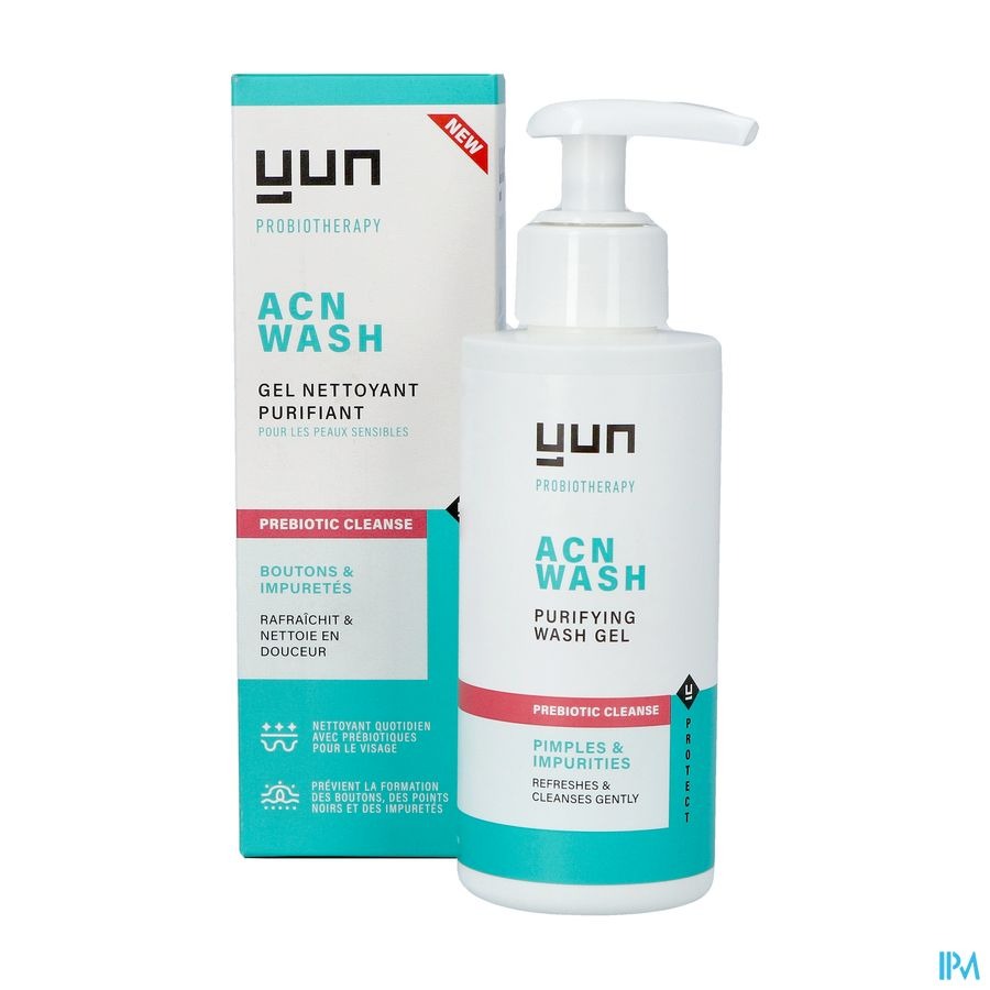 Le gel lavant purifiant prébiotique Yun Acn est un gel lavant purifiant doux pour les peaux à tendance (acnéique). Grâce à la formule à 2% d'acide lactique, les boutons, points noirs et impuretés peuvent être évités. Le gel frais laisse la peau fraîche, pure et propre.